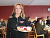 Initiativtagaren Lena Alke med nöjda våffelgäster i bakgrunden.