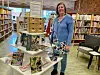 Bibliotekarien Eva Thelin vid fröbiblioteket.