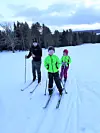 Simon Sundvall från Västbyn tar med döttrarna Wilma och Maja runt skidspåren.