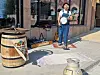 Det var en varm kväll och på torget mittemot Storsjöteatern satt unga som äldre på stentrapporna och åt glass. Någon passade på att i lössittande kläder, springa en kvällsrunda över torget medan musikern John Edwin stod med hängselbyxor vid glasdörrarna intill Storsjöteatern spelande på sin banjo.