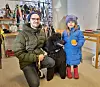 Alice Manneby, 3.5 år hittade en ny boll till sin kompis Hasse, en storpudel på 10 månader. Pappa Carl Lindman Manneby letade under tiden efter ett nytt halsband. "Min sambo såg om loppisen på facebook. Vi har hittat en hel del här redan. Det är bra att få prova halsbanden så det passar".