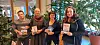 Litteraturutvecklaren Johan Hemmingsson, biblioteksutvecklaren Helena Broms, bibliotekarien Anna Ring och Eva Malm visar upp fyra aktuella böcker av ett urval författare som medverkar på årets Bokens dag. Eva är ombudsman och medverkade på pressträffen i stället för Mats Borgström som arbetat med evenemanget för ABF.
