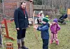 Axel Strantzalis spänner bågen, bakom står systern Agnes.