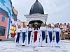 Jämtlands Lucia framför det 136 år gamla trätornet, som en gång satt på Grand hotell i Östersund.