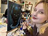 Maja Nordkvist jobbar hårt med sin tavla i Tingshusets ateljé.