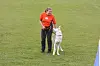 Malin Ekstedt från Pilgrimstad med hunden Sapp väntar på start.
