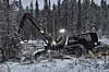 Kraftigt motlut och grov skog. Utan hybriddrift skulle skördaren krävt en betydligt större dieselmotor för att göra jobbet. Superkondensatorernas kraft räcker gott och väl för att låta maskinen göra flera tunga arbetsmoment samtidigt