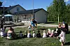 “Sorterings-Tina” ställer ut sina sorteringskärl så barnen kan plocka rätt sak på sin plats.