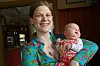 Nya restauratören vid museet Lisa Wolter med 7 veckors barnet Sonja på armen.