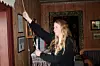 Eva Lotta Norell hade flera funktioner. Hon sjöng och spelade men fick också hoppa in som ringare! Prick klockan åtta grep hon tag i repet som går till hembygdsgårdens tak, där vällingklockan finns.