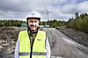 Omgivet av vindsnurror från nästan alla väderstreck står Petter Sund och pekar på ett område med två containrar, varav en ska fungera som transformatorstation.