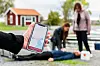 Med hjälp av den nya appen kan den frivillige snabbt få information om vägen till den drabbade och till närmaste hjärtstartare. Foto: Heartrunner Sweden AB