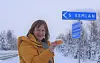 JT:s journalist med en semla som väntar på att bli uppäten i byn Semlan.