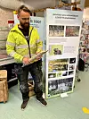 Vandringsutställningen har kommit till Norråker där besökaren Jörgen Pettersson lär sig mer om bävern. Här ska utställningen stå i två veckor innan den reser vidare i kommunen.