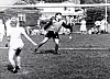1984 var Superstartävlingen en viktig del av Dundermarknaden. Här är det Anette Carlén som slår in en straffspark med Sven-Åke Melander som målvakt (bild ur boken)