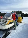 Orange glesbygdskavaj och tidstypisk skoteroverall. Laila och Albert Sandkvist blev coolaste Ski-Dooåkarna på Elan från 1975.