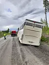 Vid ett möte gled husbilen, som väger 12 ton, ner i diket. Regnet, som har varat i två dagar, samt tjällossningen gör vägen extra lerig. "I partier sjunker man ner i leran", säger ett vittne.