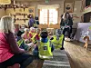 Sagostunden bjöd på sagor som barnen kände igen. Här berättar bibliotekarien Maggan Hjorth om Bockarna Bruse.