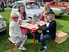Några som njöt i solen bredvid finbilen Fiat 600 av 1966 år modell var Linnea Jönsson och Sofie Sannemo och Kelly och Lennon.